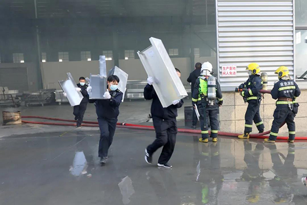 演練當(dāng)天,由安徽鑫翊新材料有限公司企業(yè)立即啟動(dòng)《安徽鑫翊新材料有限公司綜合應(yīng)急預(yù)案》,同時(shí)攜帶救援滅火設(shè)備開(kāi)展自救。